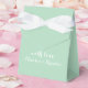 Fancy ribbon script accents this mint green favour box, that is easy to customize for your event.