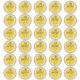 30 custom honey jar 2" labels featuring a bright yellow honeycomb background, honeybees, a wooden honey dipper, and your details.