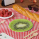 Fresh kiwi fruit. Round slice closeup isolated Paper Plate