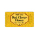 Honeycomb honey jar label for "Red Clover Honey", Wildflower or any nectar variety with customized text for honey colour or other features: "Fresh Local" and net weight. Add the name of the beekeeper or apiary business and contact information on the side panel, and optional note about re-liquifying crystalized honey or the infant warning: "Infants can begin to enjoy honey after their first birthday." Change the text or background colours when you 'Click to customize further', and use the colour picker. ©dotpattern