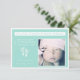 A fresh and modern aqua mint and white neutral gender photo birth announcement with cute baby feet footprints. Personalize this sweet birth announcement by adding a baby picture, the name of your new baby boy or girl, birth date, measurements, and special message to the custom text template areas. Love the design but want a different colour? Send your request via the 'contact seller' button at the bottom of my store page. Original Art copyright of ©PartyPlans