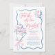 This invitation features a whimsical, hand-illustrated aesthetic that feels both artisanal and sophisticated. With a soft color palette of blush pink and dusty blue, it sets a light, airy tone for a farm brunch, garden party, or flower-arranging themed shower.