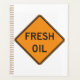 Organize your schedule and tasks with this Fresh Oil Road Warning Sign Spiral Planner. The cover features the bold orange and black caution graphic, making it a unique organizational tool perfect for construction managers, project coordinators, or anyone needing to manage a busy schedule. This durable spiral notebook offers plenty of space for notes, appointments, and project planning with a fun, road-themed twist.