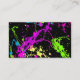 Fresh Retro Neon Paint Splatter on Black 80s Party Business Card