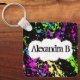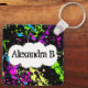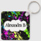 Fresh Retro Neon Paint Splatter on Black Keychain