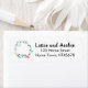 Nom de la guirlande fleurie de printemps fraîche et étiquette de l'adresse de retour avec une jolie guirlande à côté de votre nom de famille et des coordonnées de votre adresse.