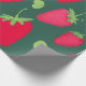 Fresh Strawberry Pattern on Dark Green Background Wrapping Paper