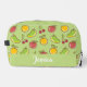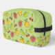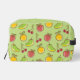 Fresh summer fruits include mango, lemon, apple and cherries on green background pattern.