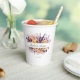 Customer-Specific Wedding Paper Cups with a wild-flower bouquet design and scripted font.