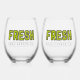 A set of two stemless wine glasses with the FRESH logo. Clean, modern, and perfect for entertaining, relaxing, or celebrating your next big move.