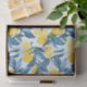 This bright and refreshing lemon tissue paper is perfect for adding a pop of colour to your collection! Featuring artistic lemons and lush blue leaves on a soft sky-blue background, this design has a fresh Mediterranean feel. This citrus-inspired design brings a cheerful and stylish touch, great for anyone who loves botanical patterns, fruit-themed designs or vibrant nature prints.