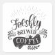 A design for coffee lovers that says freshly brewed coffee. This design looks really effective on these Stickers