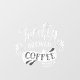 This coffee shop window cling features whimsical hand lettering that says "Freshly Brewed Coffee" in white on a clear background. The lettering features decorative swashes and ornamental swirls.
