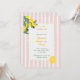 Celebrate a sweet milestone with this lemon-themed graduation invitation featuring soft pink stripes, fresh citrus illustrations, and elegant script typography. Perfect for spring and summer graduation parties, this design stands out among trendy citrus, pastel, and floral-inspired invites. Easily personalize with your event details for a stylish and cheerful graduation celebration. Original artwork by Caroline Bonne Muller.