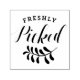 Whimsical and stylish rubber stamp featuring modern calligraphy "freshly picked" with foliage accent. This rubber stamp is perfect for fresh produce businesses.
