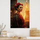 A tribute to Frida Kahlo's spirit—burning bright, unbroken. With floral crown and fire-lit skies, this surreal portrait fuses tradition and rebellion. Vintage textures meet modern mystique. Hang it loud, hang it proud. I am my own muse. I am the flame
