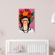 Beautifully designed Frida Kahlo poster with floral elements on a pink background