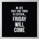 "In Life Only One Thing Is Certain… Friday Will Come". Funny motivational office quote art print, in a black and white design, perfect for your studio, office, or work gift. Keep motivated to get to the end of the week and keep things in perspective. Great for corporate team motivation.