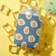 A pattern from fresh fried eggs on a sky blue background. Good morning breakfast :)