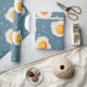 A pattern from fresh fried eggs on a sky blue background. Good morning breakfast :)