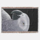 Original fine art design of a friendly African Grey parrot by avian artist Carolyn McFann of Two Purring Cats Studio printed on a quality throw for all who love pet parrots.