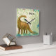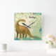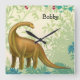 Original fine art design of a friendly Brachiosaurus dinosaur by artist Carolyn McFann of Two Purring Cats Studio printed on a quality and easily customizable wall clock for all who love dinosaurs, kids to adults.