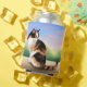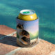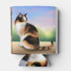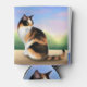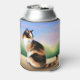 Original fine art design of a friendly young calico cat by artist Carolyn McFann of Two Purring Cats Studio printed on a quality can cooler.