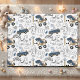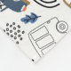 Introducing our Friendly Dinosaurs in Cars Pattern blanket! This design features a cute illustration of smiling dinosaurs driving cars and buses.
