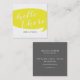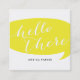 Modern yellow business cards with the words "hello there" in an elegant script font.