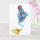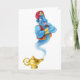 Illustration of a friendly Jinn or genie coming out of a gold magic oil lamp like the one in the Aladdin story