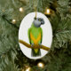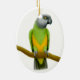 Original fine art design of a Senegal parrot by designer Carolyn McFann of Two Purring Cats Studio on a quality holiday ornament for Poicephalus African parrot lovers.