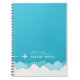 A bright and vibrant turquoise flight notes notebook tailored to the airline pilot, flight instructor, or aviation engineer. It features a bright turquoise theme with a miniature airplane soaring over clouds on the bottom edge. Next to this miniature plane and above the clouds is the recipient's name in white. It works as a fun and thoughtful item for someone who works in or loves the business of aviation.