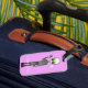 Pleasantly surprised at the quality of the luggage tag. It was exactly as shown and my daughter will be pleased. The address label on the back of the luggage tag was neat and clear.