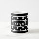 Pretty mug with Friends written in centre in white script. Geometric shapes with white polka dots and stripes against black background. Fresh modern look. Visit my store for matching accessories. Original artwork designs © TamiraZDesigns.