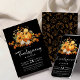Introducing a chic Friendsgiving Dinner Invitation that artfully blends classic fall imagery with high-contrast modern design. A trio of delicate watercolor pumpkins—in soft shades of cream—nestles into sprigs of muted pastel foliage on a deep charcoal-black background, creating an elegant yet inviting backdrop for your Thanksgiving gathering.
