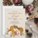 Elegant, rustic Friendsgiving Feast/dinner party invitation with pumpkins, flowers, and fall leaves in a beautiful fall/autumn scene.