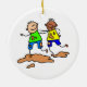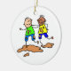 Cute cartoon whimsical illustration of two happy little boys from different ethnic backgrounds playing together in the mud. Easily customize and choose your own background colour or add text. Image available on various gifts and products.
