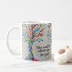 This decorative coffee mug features a mosaic tree in rainbow colours and a friendship message.