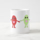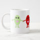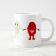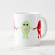 This awesome mug features a cute cartoon of a smiling red grape holding hands with a smiling green grape, both grapes have shiny black eyes and pink mouths.