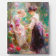 An AI-generated painting of two girls in a flower garden.