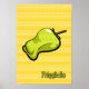 A yellow-green friggitello chili pepper, also known as a Greek golden pepper or, in the US, pepperoncini when pickled, is decorated with patterns inspired by designs on ancient Greek amphorae and sits on a yellow background with a smaller version of the same pattern and a script label in the corner. This mild pepper was originally cultivated in Italy and is eaten throughout Europe and the United States.