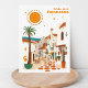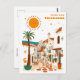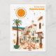 This postcard from the Frigiliana, Andalusia, Costa del Sol, Spain is a gorgeous piece of art. It features a beautiful Mediterranean old city with white houses, a cobblestone street, a palm tree, and a big sun. It's a perfect greeting card for Frigiliana residents, visitors, tourists, or fans.
