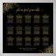 Ce tableau de sièges mariage comprend des assignations de table pour 150 personnes à 15 tables. Le design est simple mais élégant avec du texte doré sur un arrière - plan noir. Le titre est écrit dans la calligraphie de script en dentelle et il y a des décorations florales de faux feuille dans les coins. Une façon élégante, chic et sophistiquée d'aider vos clients à trouver leur place à la réception.