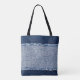 Fringed denim blue jeans frame. tote bag