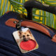 Pleasantly surprised at the quality of the luggage tag. It was exactly as shown and my daughter will be pleased. The address label on the back of the luggage tag was neat and clear.