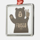 I was impressed by the quality and size of the ornament. Metal framing and design were perfect. Definitely recommend any of the metal framed ornaments. I ordered different ones all of the same quality and personalized professionally. Perfect No pictures as they were all gifts