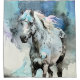 A beautifully depicted horse stands majestically against a backdrop of soft, swirling colours. The use of watercolor adds a dreamy and ethereal quality, highlighting the horse's flowing mane in various shades.This digital watercolour painting is of a frisky Appaloosa, an American breed best known for its colourful spotted coat.