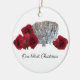 Sharing your first Christmas with someone is so special. Here is a beautiful chandelier light sparkling with red roses around it. Customize as desired.