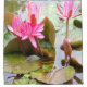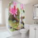 A beautiful scene of a frog surround by pretty pink flowered lily pads, on this wonderful shower curtain.