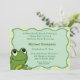 Cute Green frog Birthday Party invitation with a leaf background. Customize with your party details.